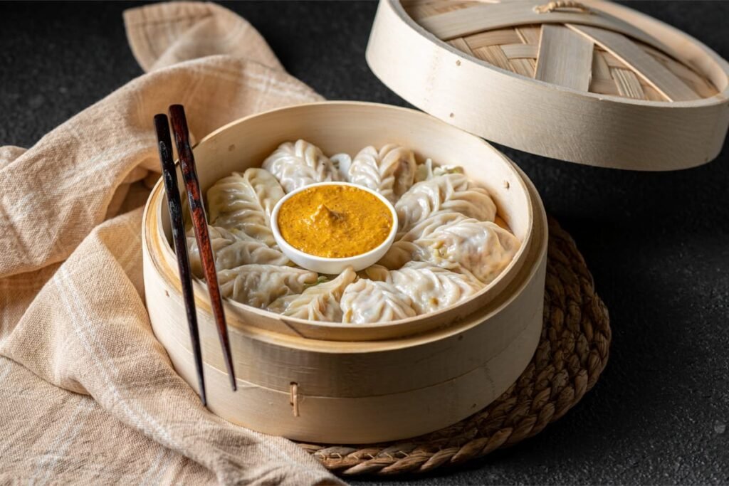 Traditional Nepali steamed dumpling filled with sweet jaggery delight.
